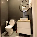 Die Badezimmer in der Villa in Września sind mit einer Dusche ausgestattet. Ein Haartrockner und Badelaken werden auch angeboten.